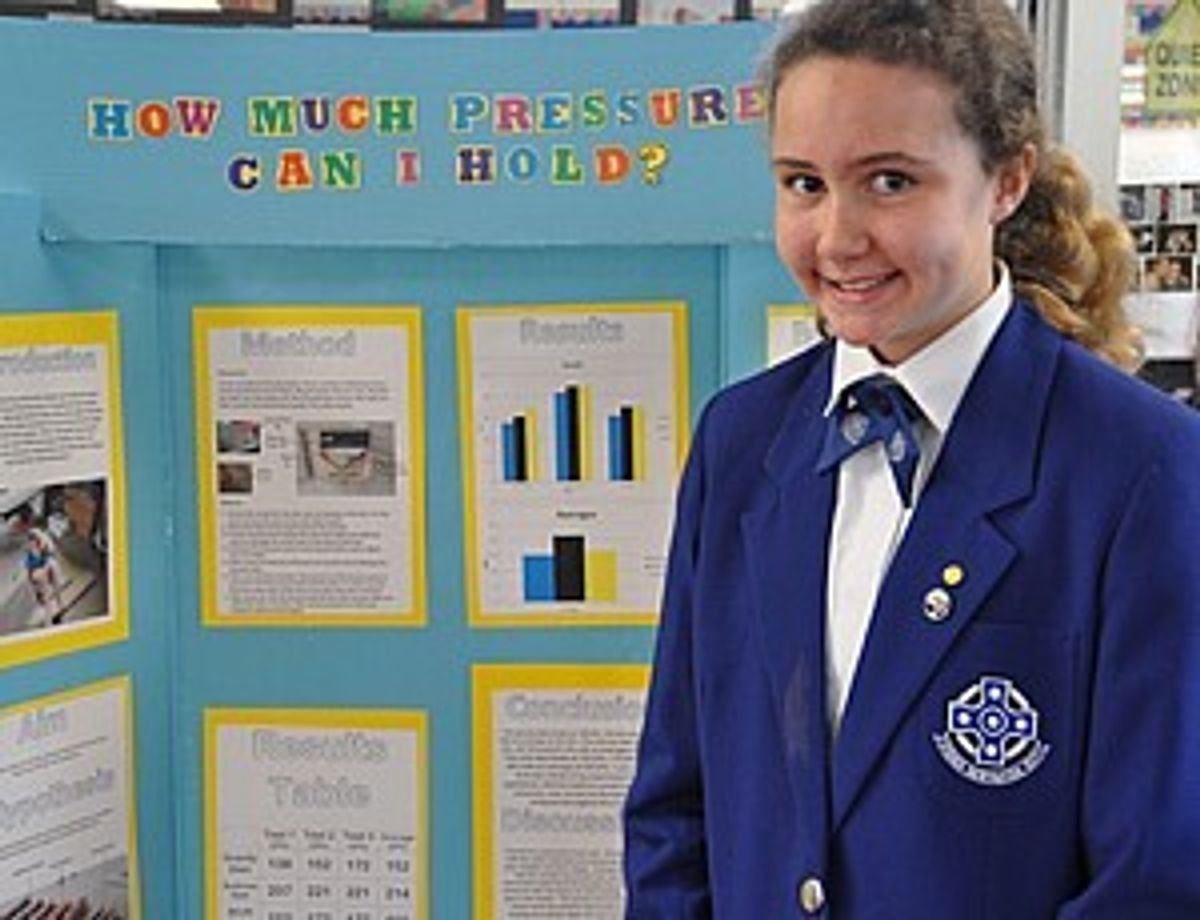 We are delighted that Paige Badish placed 1st in the Years 7 & 8 Physical and Material World category with her project ‘How Much Pressure Can I Hold?’ This tested the holding power of different dam designs proving that the buttress design was the strongest.