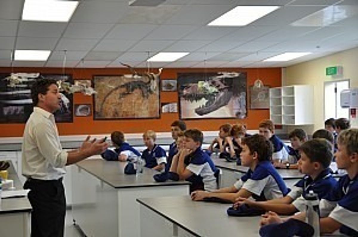 The Year 7 students from the Boys’ School were welcomed to the College campus today for a taste of what to expect when they enter secondary school. The visit began with lunch in the dining room at Bruce House, the boarding facility, before the boys headed to the Science Block.