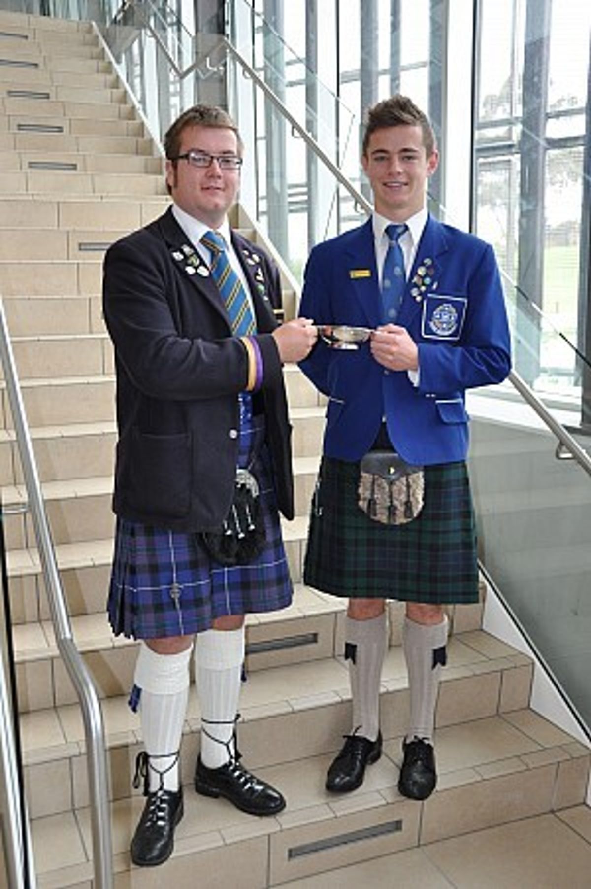 Craig then took part in a traditional ceremony amongst our Head of College Steve Cole, Head of Pipes and Drums Andrew Lightfoot and Head Boy Sam Grant in welcoming him to Saint Kentigern.