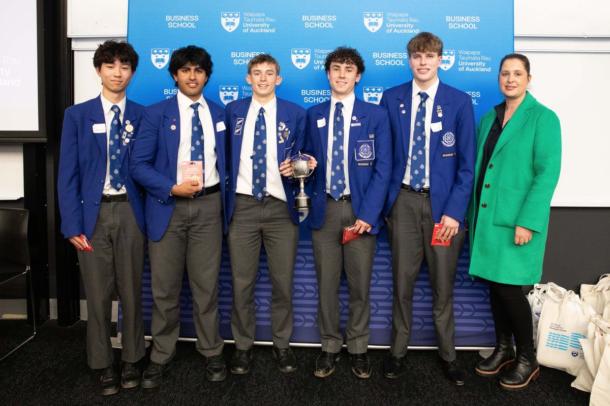 In the Business competition, Aidan Chu, Anna Ros, Lucy Sweetman, and Sophie Whelan secured victory for a second consecutive year. The team maintained a narrow lead throughout, claiming the trophy in the final round on financial information ahead of strong challenges from Mount Albert Grammar and Macleans College.