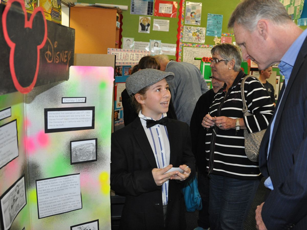 Parents, grandparents, teachers and fellow students were invited to see and hear the presentations in the Elizabeth MacFarlan Centre. Delving deep into their character, the students gave a 60-second recount of their famous person’s life story, with accents, props and mannerisms all used to convey their subject’s personality. The students recited their speeches many times across the afternoon, with their enthusiasm and passion maintained, and confidence growing. The oral presentations were being assessed for their voice projection, body posture, eye contact and memorisation as part of the English literacy curriculum on speech making. The displays were marked on their use of visual language skills, such as structure, ideas, audience awareness and presentation. The occasion was the culmination of a great learning experience for the students and an entertaining and informative one for the guests.