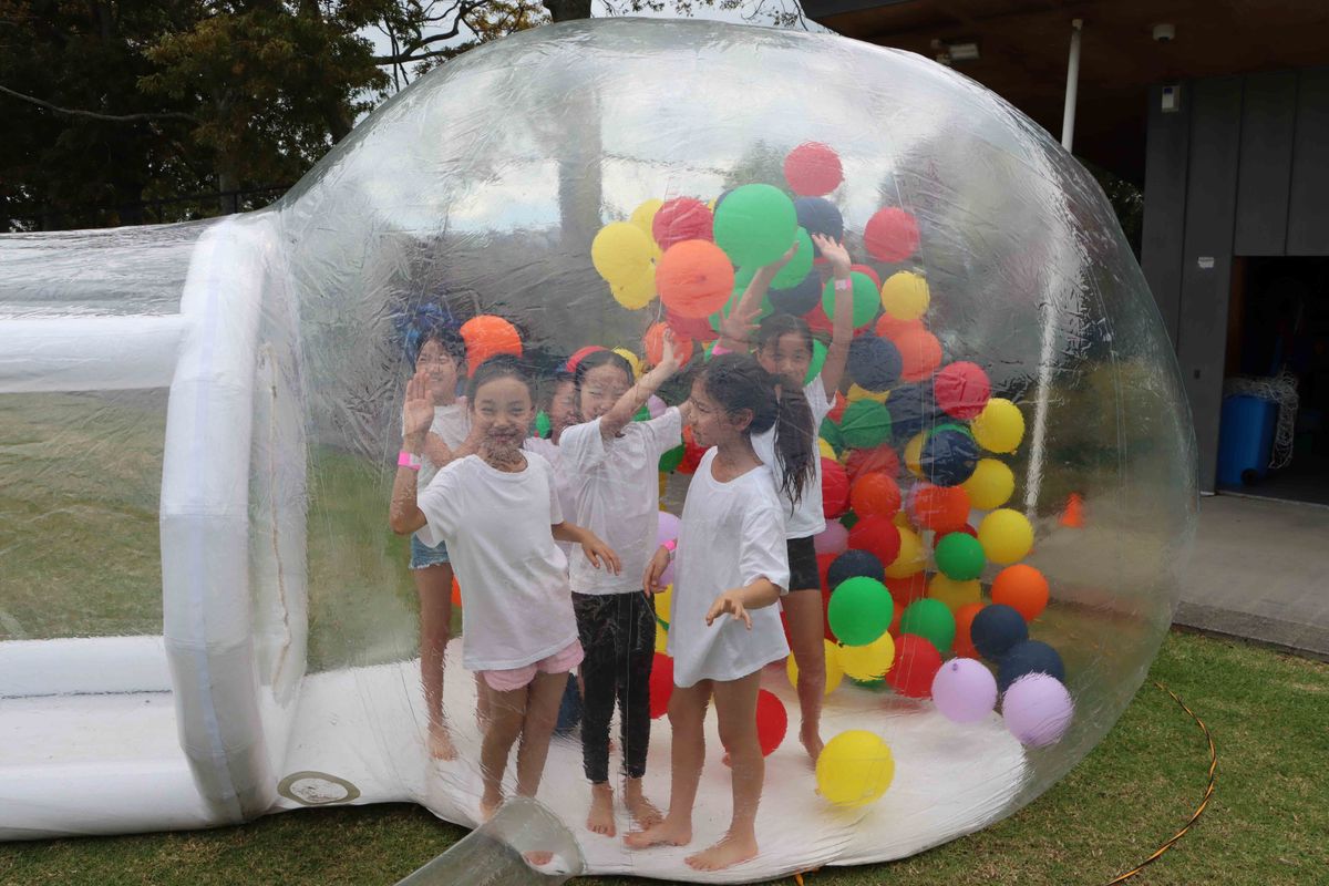 The day began at a gentler pace, with families spreading picnic rugs across the field and settling into the early afternoon. A range of activities created a festival-like atmosphere, with bungee trampolines and a human-sized snow globe providing novel fun before the main event unfolded.