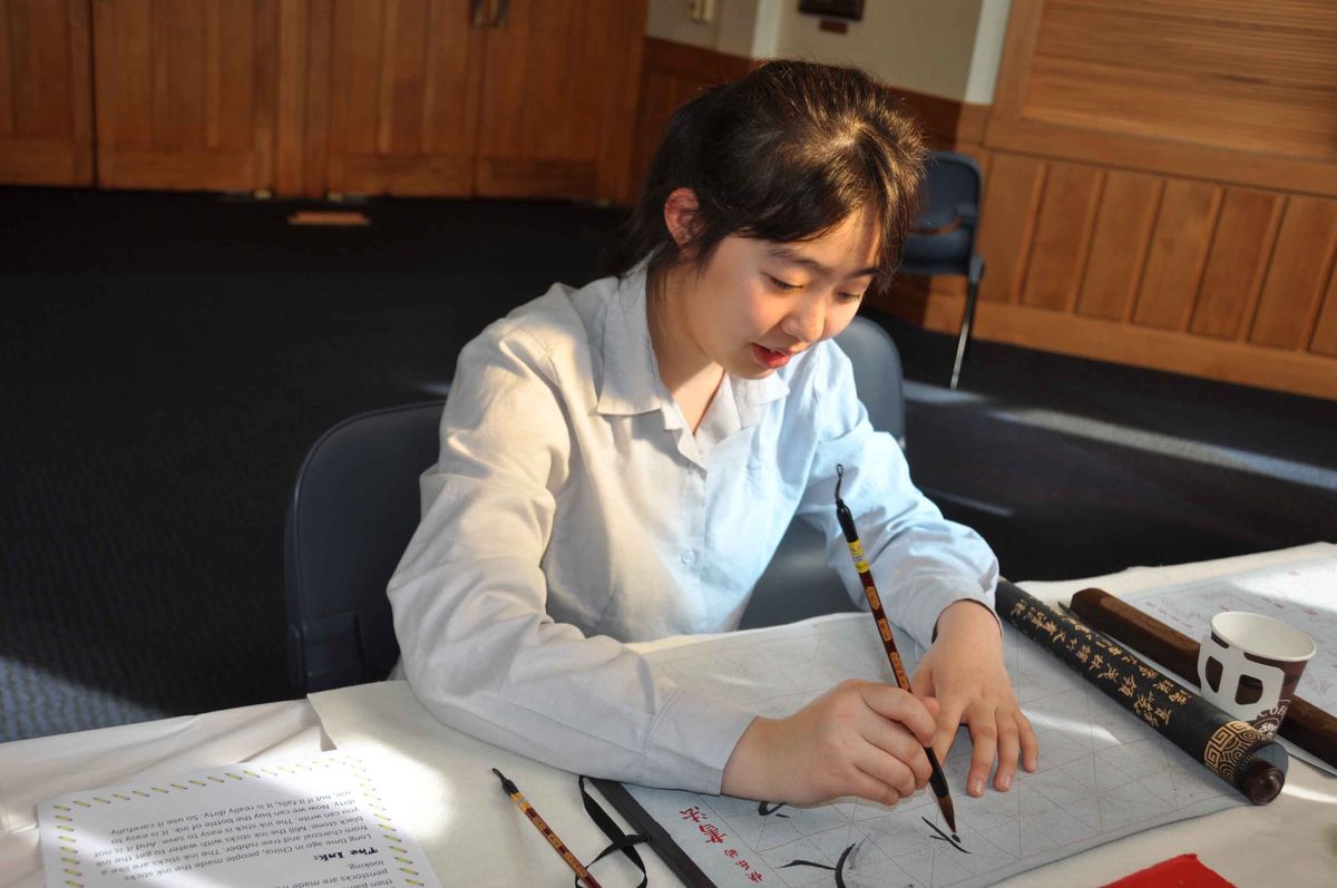 To entertain, there were demonstrations of Chinese chess, ink blowing, paper cutting and mask painting. To teach, there were lessons in te reo Maori, calligraphy, rope tying, origami and chopsticks. Have you ever tried to pick up a table tennis ball with chopsticks? How about an M&M? Some stall-goers found out that it’s not easy! To sate thirst and hunger, the students taught teachers and peers alike how to make sushi, wantons and dumplings, while others brewed guan yin tea. Providing the soundtrack were musical performances on a gu zheng (Chinese zither) and hu lu si (flute).