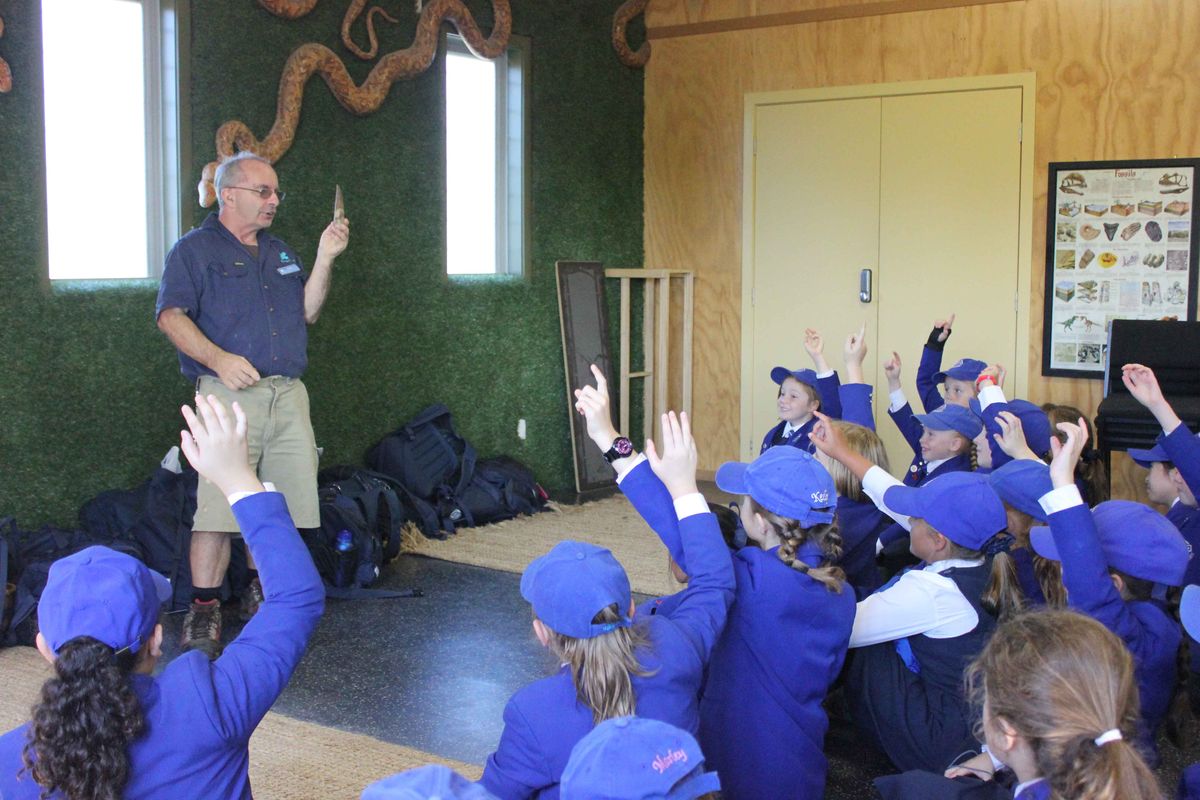 Back in the classroom, the junior palaeontologists discovered the other side of the discipline – applying what they have found to know more about the Earth’s past. They investigated one species of dinosaur, the era it lived in, and its features, habitat, behaviour and food. The girls then had to find and identify their dinosaur during a trip to Butterfly Creek. The Dinosaur Kingdom at Butterfly Creek features life-size replicas of more than 40 species, from Allosaurus to Velociraptor. Moving among the enormous herbivores and fierce carnivores provided an opportunity to encounter the prehistoric creatures they had been studying. Some of the exhibits are animatronic which gave an insight into how the dinosaurs moved and the sounds they made! The girls’ knowledge was also boosted by a tour and presentation by one of the park’s guides, Paul. He explained further the various processes of fossilisation and showed the girls a real-life example of fossilised dinosaur droppings.