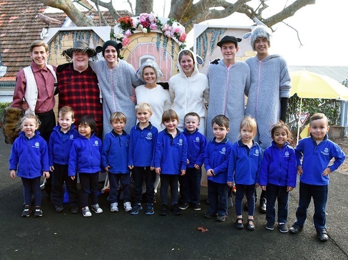 Entertained by top drama students from the Senior College, the preschoolers watched the story of Sam the famer (Sam Ashton) and his five sheep (Jack Horsnell, Callahan Jones, Amelia Elliott, Hannah Hughes and Matthew Turner) unfold.