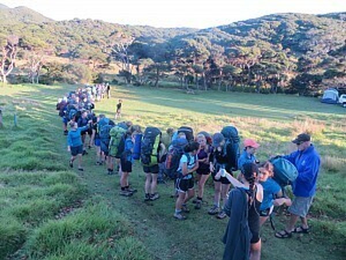 The silver practice expedition took place on Great Barrier Island. In the early morning, 79 students and 10 staff embarked onto the Great Barrier Island ferry to make their way to spend three days tramping and camping on the Barrier. Thankfully the four hour ferry crossing was calm. In great weather, the students tramped along the coastal cliffs to the Heratonga camp site. This is located next to an estuary and a short walk to the beach. Some students took advantage of the good weather and went swimming.