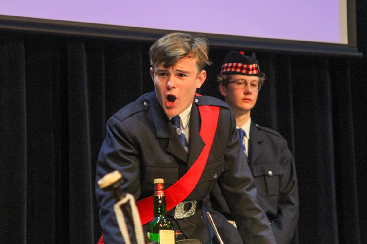 Throughout the evening, the spirit of Scotland permeated every aspect of the celebration. In the grand tradition of Scottish gatherings, Charles Adams delivered an energetic rendition of the Ode to the Haggis, the perfect homage to the Great Bard before guests sat down to eat a hearty meal complete with haggis.