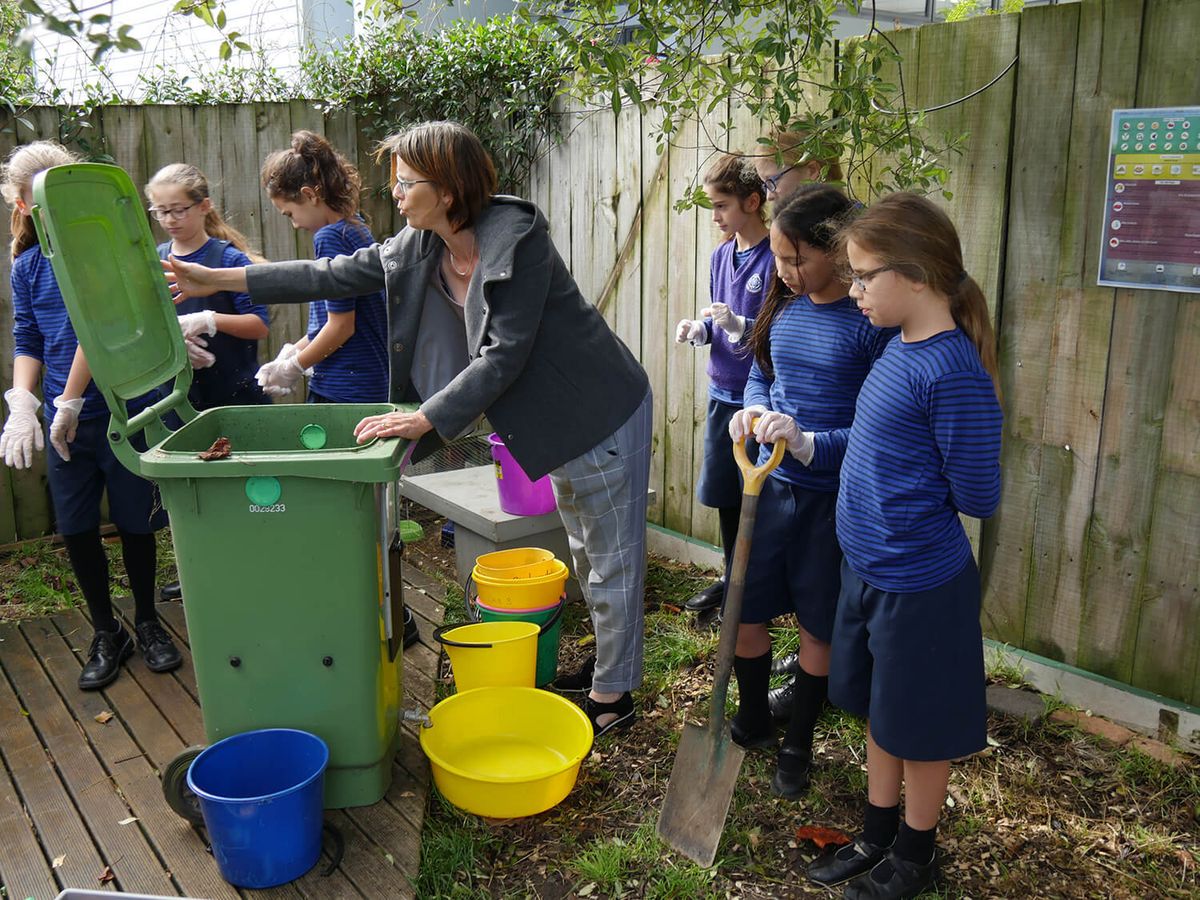 It’s now six years since the worm farms were first established at the Girls’ School in two specially adapted wheelie bins that provide the perfect environment for composting. Over the years, each successive intake of girls has become very proficient at understanding what makes suitable scraps for the tiger worms inhabiting the bins. Buckets are strategically placed around the campus, along with posters to remind students and staff alike what ‘leftovers’ can be added to the bins from lunchboxes. The girls have learnt that worms like variety in their diet and if fed correctly and moisture is added, ‘worm tea’ and ‘worm castings’ can be drawn from the bottom of the bin at regular intervals to make a rich fertiliser.