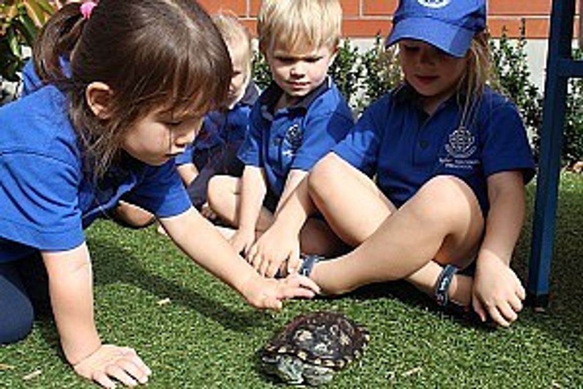 Preschool has a small menagerie of animals that the children love to care for and observe. For many this is an opportunity to be close to an animal as they don’t have pets at home. ‘Squirt the Turtle’ is the favourite – the children feed him every day and love to watch him have some ‘free time’ out of his tank in our garden!