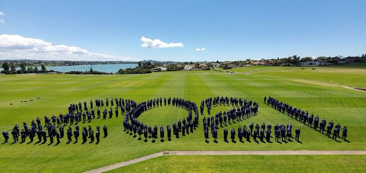 The Graduation afternoon started with a Chapel service delivered by College Chaplain Reverend Smith, before students were led by fellow Year 13 pipers, Cameron Dean and Charlotte Cornwall, and drummers, Sarina Wang and Nic Lacey, to the No 1 Sports Field for the annual tradition of forming a giant ‘human’ 2021 for an aerial photo, representing the graduating Class of 2021.