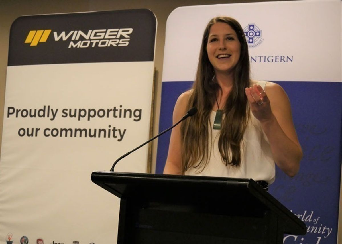 Following dinner, Deputy Principal, Jill Wahlstrom welcomed our guest speaker, Eliza McCartney. Eliza has represented New Zealand at several competitions and Commonwealth Games around the world in pole vault and was the youngest-ever Olympic medallist. In her speech, Eliza shared some of the major struggles that she has faced in her career thus far and gave the girls tips on how to deal with the stress of life, challenges and failure. She encouraged the girls to be open minded, face challenges head on, put 100% into everything and laugh. She mentioned the importance of keeping a smile on your face as it releases endorphins and physically makes you feel better, and agreed with Alex by saying, ‘live in the moment and don’t take life too seriously.’ Girls’ School Head Girl, Jamie Chandler replied and thanked Eliza for coming in, gifting her flowers.