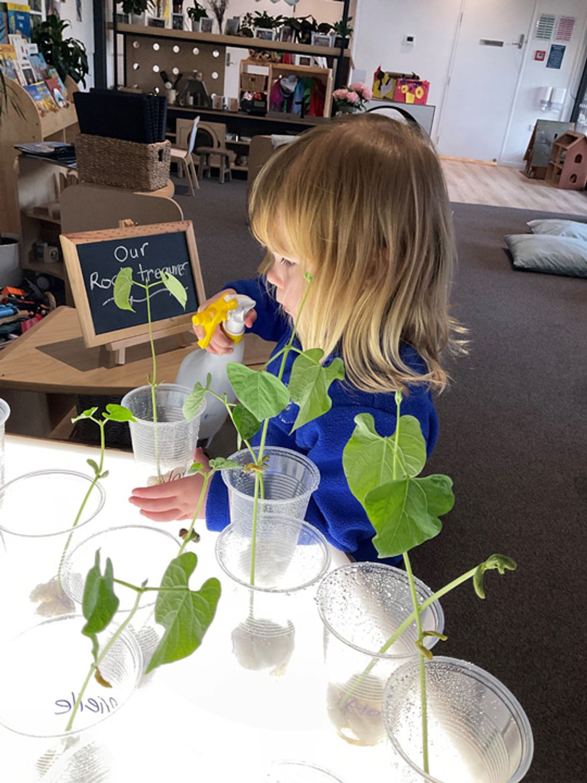 As we continued our learning adventure, the children showed interest in the magic beans, so together we decided to plant our own beans. The word got out and Alexander’s whānau donated some special beans to our classroom. Alexander and his grandmother Anne then came in for a special Hui time to talk about the special beans and how they are frozen every year to be replanted again the next year. We have been watering our beans and nurturing them to grow, while also learning about the living world.