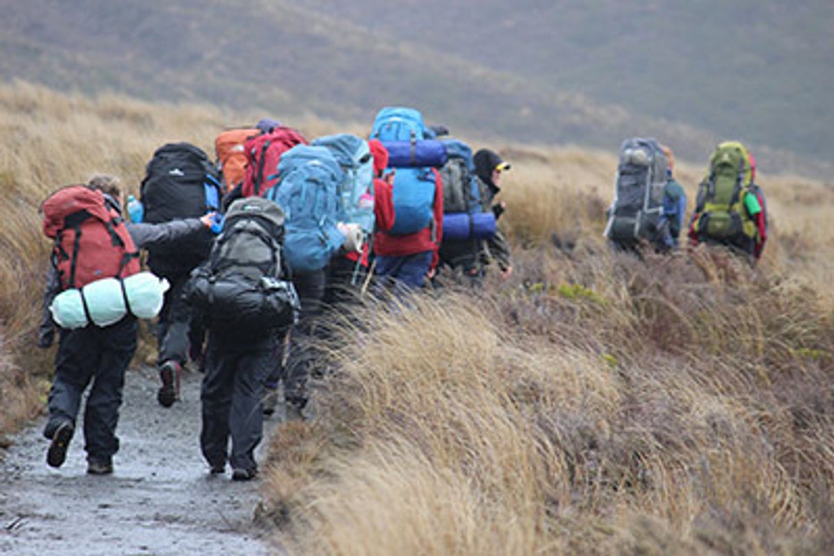 The equipment required for the overnight tramps is also another huge logistical undertaking. A tent is little use without its tent poles when you’re six hours hike from civilisation! Likewise, leaving your wet weather jacket back at the Lodge could spell disaster. Tents, sleeping bags, cooking equipment, food, water, spare clothing, first aid supplies, maps and, um…spades for essential business, all have to be distributed, checked, checked again and carried. That’s 105 tents with, 210 poles, 1890 tent pegs, 120 stoves and the, um, 14 spades to do the right thing!