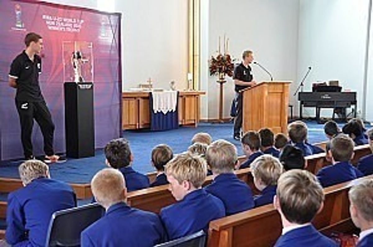 Speaking to a full Chapel, Matthew gave an inspiring talk on his footballing career and how the upcoming tournament will be a fantastic opportunity to watch international football at its finest. Former All White captain, Mr Chris Zoricich also spoke on his international sporting career, making his debut aged 18 against Israel in a World Cup qualifier in 1988. The students then had a chance to have their photograph taken with the guest speakers and the trophy.
