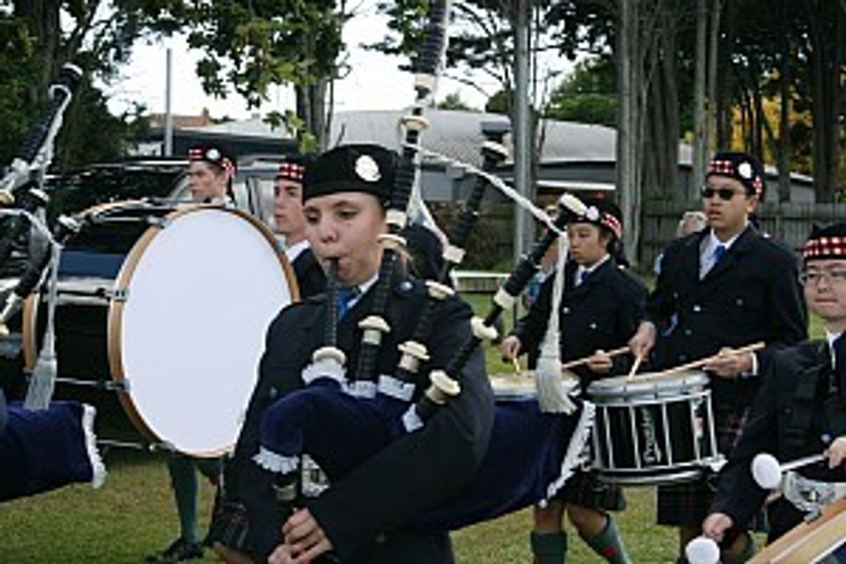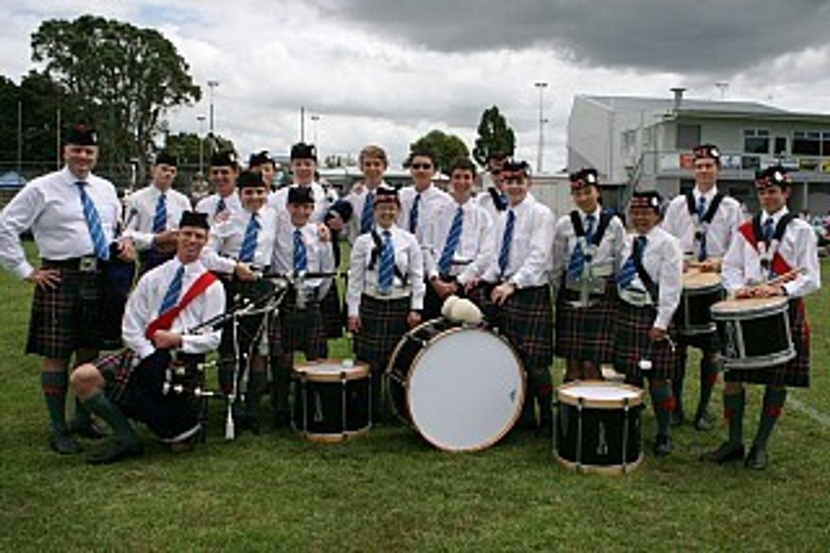 This year the competition was held at the Caledonian Park, in the famous old Scottish settlement of Waipu which has long been a focus for clan gatherings. On this occasion our pipers and drummers met a number of our past students, playing in other pipe bands, assisting with event organisation and judging - a strong sign that the traditions and culture instilled into our students continue on with them long after they graduate.