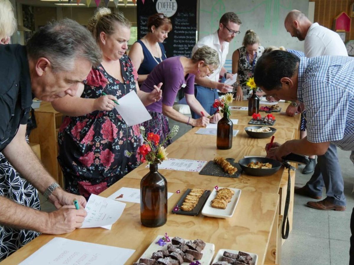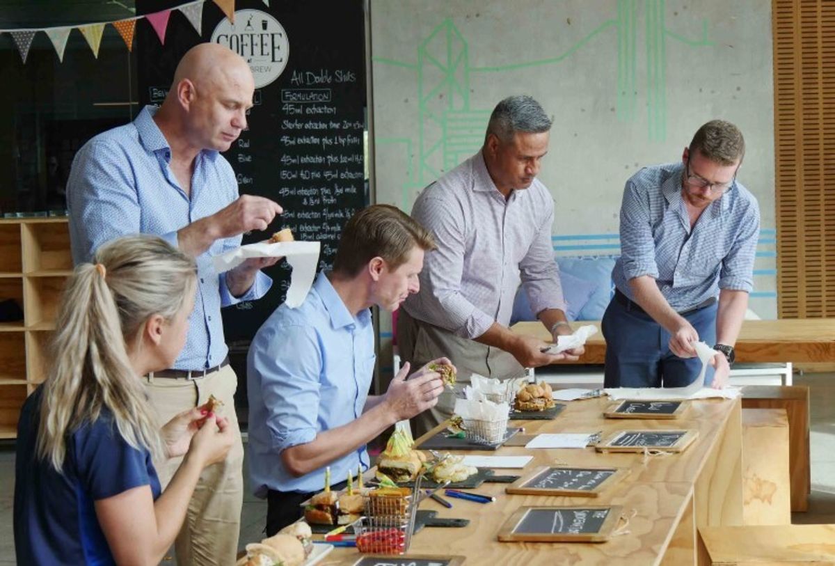 The finished biscotti and hamburgers were put in front of discerning palates this week - our staff! With a marking sheet in hand, they judged each offering on appearance, taste and texture, in the case of the biscotti, to determine which two recipes will become the biscotti of choice on offer from our coffee carts.