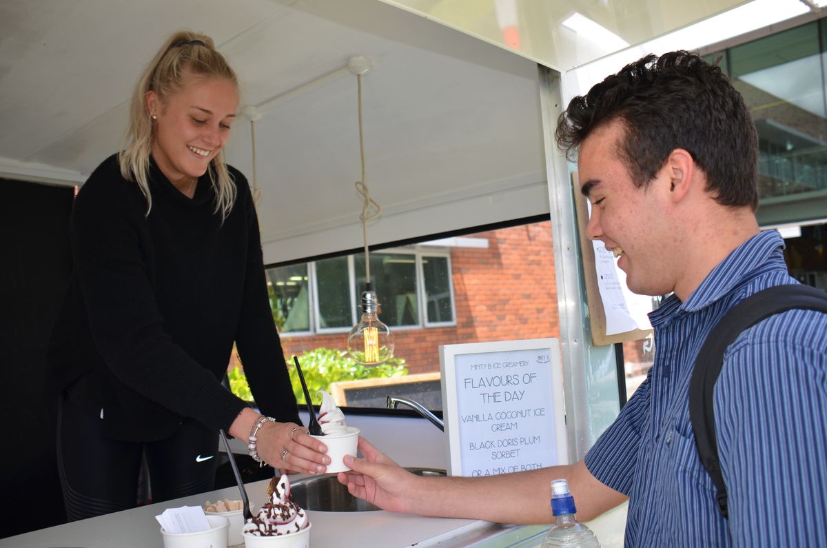 This week we welcomed Old Collegian, Gemma Scarborough back to campus with her ice cream van, Minty B. Gemma was a food technology student during her time at College who has gone on to own and operate a successful business venture offering vegan ice cream from her revamped mint green 1970’s classic caravan.