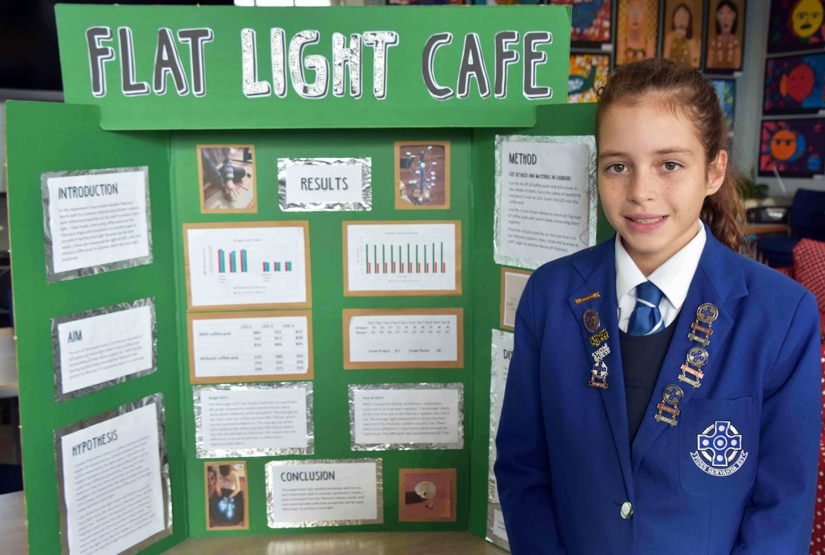 Chelsea Wijntje entered the Technology category with her project, ‘Flat Light Café’ and also received a Highly Commended. Chelsea tested whether an LED light gives out more light when it has a coffee pod surrounding it or not. She then designed a tree that was based on Fibonacci theory that and looked at how effective the light emitted from her tree design giving an improved light output.