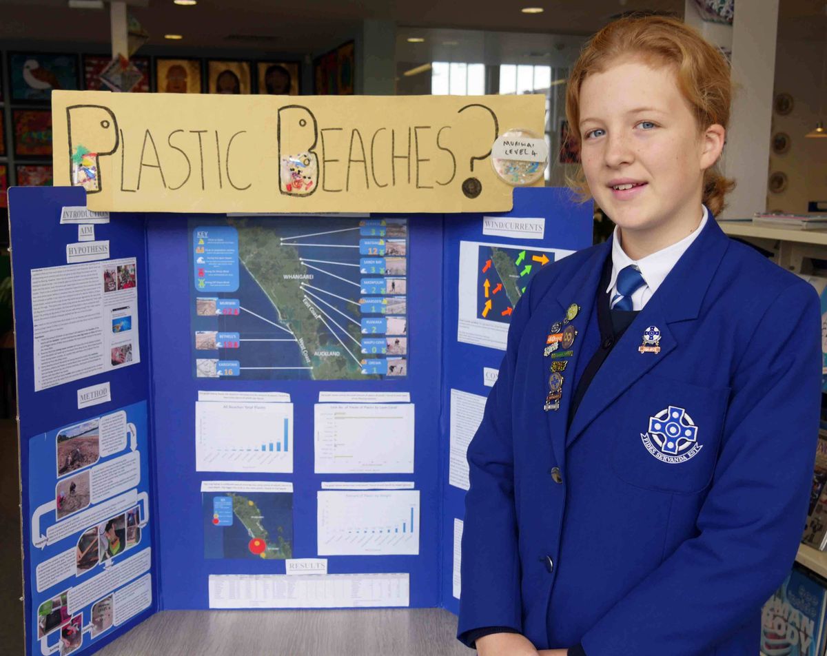 Coming second in the Planet Earth and Beyond category was Abby Heazlewood with her project, ‘Plastic Beaches!’ Abby focused on finding out how much plastic is on our beaches and the quantities of larger pieces of litter and small pieces of plastic - she also looked at why there are various amounts on different beaches. Alongside second place, Abby also received the Bronze Sponsor’s Award; Supporters of Tiritiri Matangi & Fullers Cruises prize.