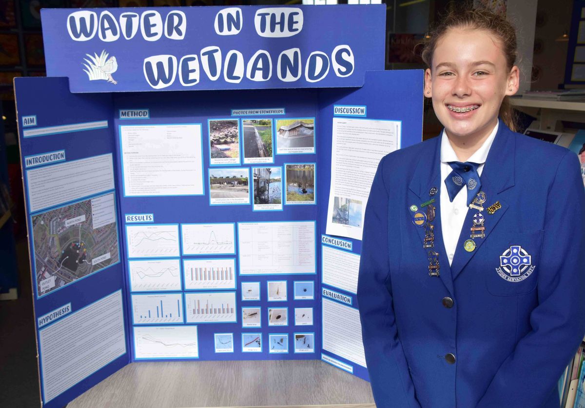 Jamie Chandler received three awards for her project, ‘Waters in the Wetland.’ She gained a Highly Commended in the Plant Earth category and claimed the Bronze Sponsor’s Award; Birds Auckland Award and the Silver Sponsor’s Award; RIMU Auckland Council Award. Jamie aimed to prove that the pond drainage system at the Maungarei Springs Wetlands is effectively treating the stormwater from the stonefields.