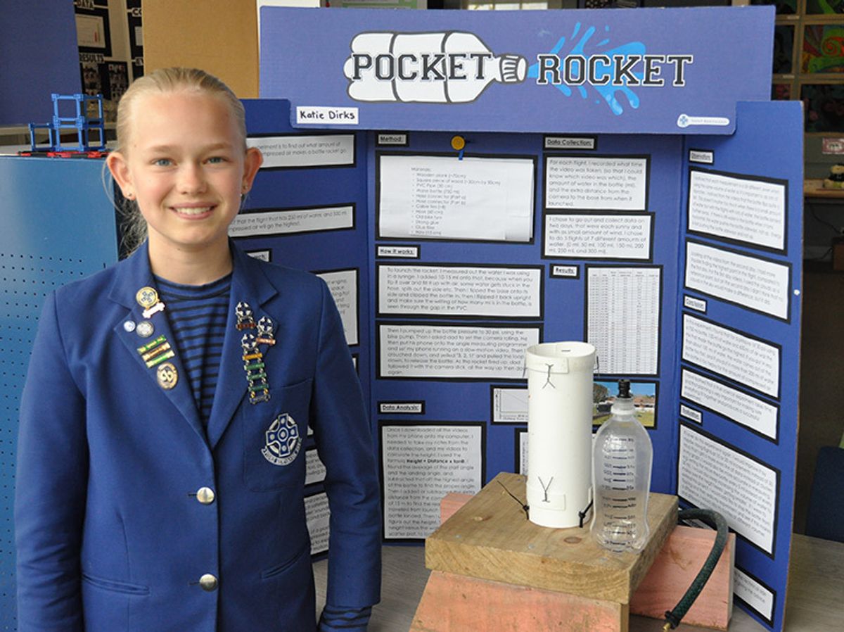 Katie Dirks was awarded 2nd place in the Physical category for her project ‘Pocket Rocket’ and also received a silver special prize awarded by the Science Award Trust. Katie’s aim was to find out the ideal amount of water relative to compressed air that makes a bottle rocket go the highest.