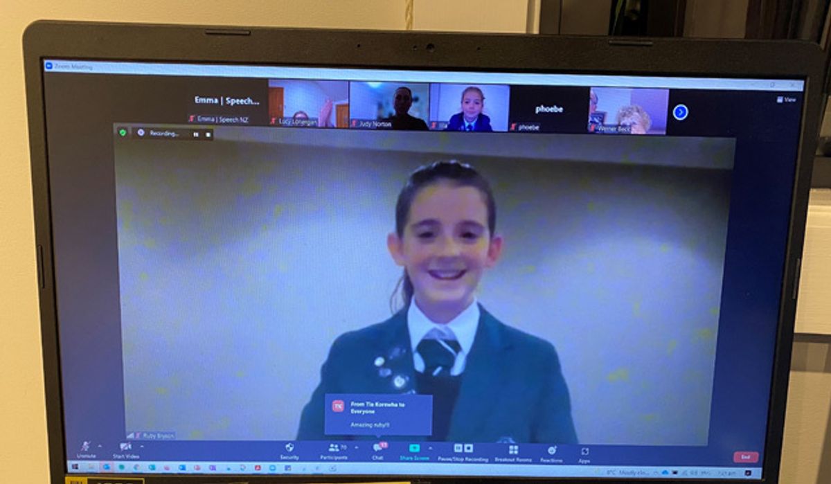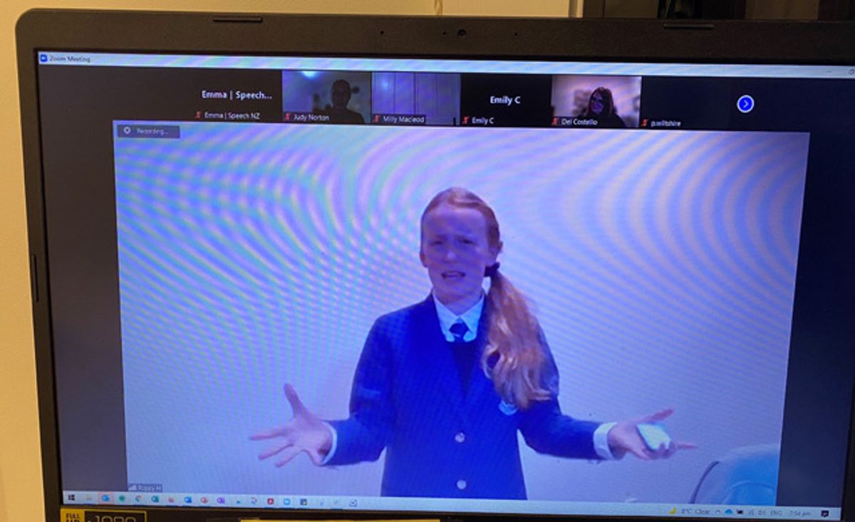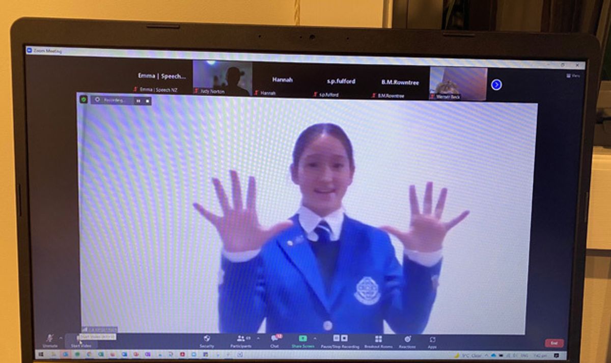Despite our girls being scattered across Auckland, safe in their own bubbles, Lockdown did not prevent many of our Girls’ School bubbles coming together online for this year’s Speech and Spoken Word competition. Unable to be held in person at school, this online Zoom event was hosted by Emma Carpenter, Executive Officer of Speech N.Z, and we thank her for her help and guidance in ensuring the evening went smoothly.