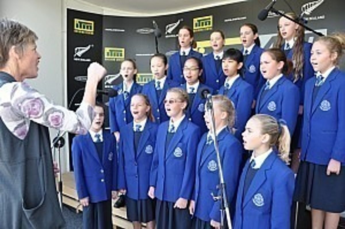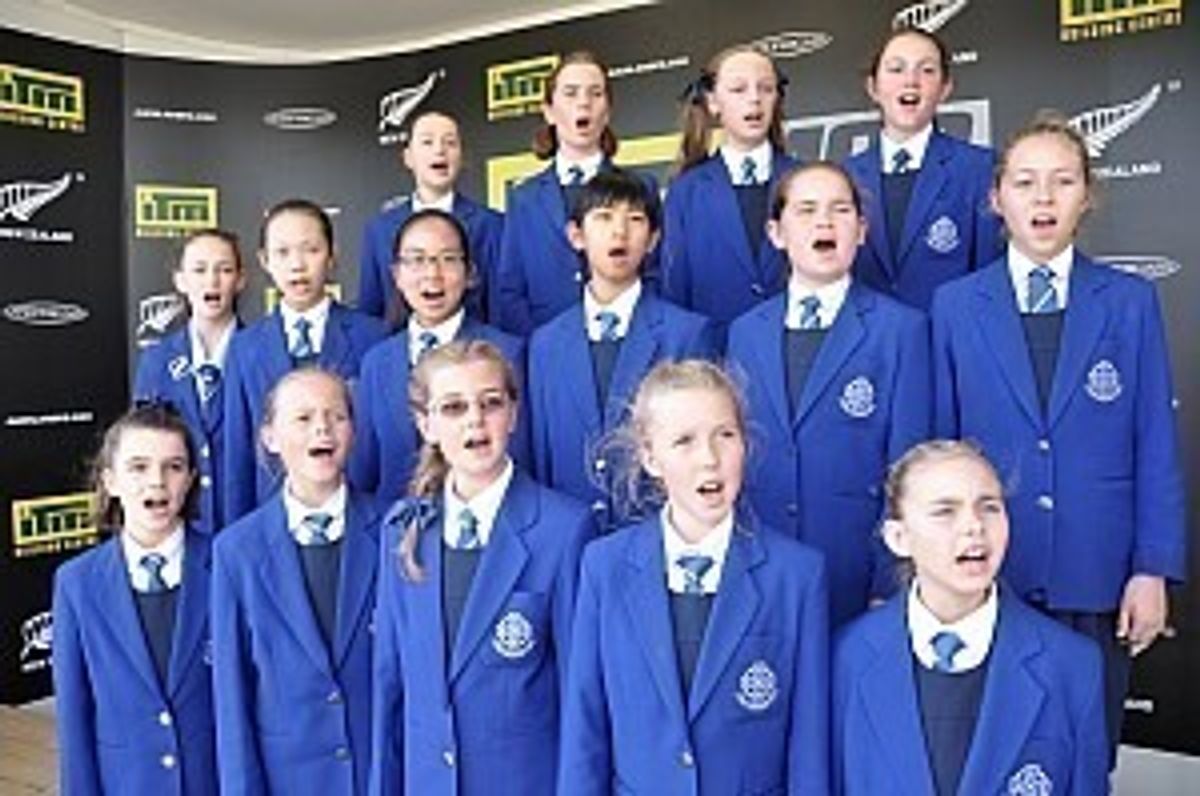 Singing to a potential audience of 900 million homes worldwide could be cause for the most professional choir to be nervous but the 16 strong Saint Kentigern Girls’ School auditioned performers’ choir of 9 to 12 year olds have taken it in their stride. For weeks, under the guidance of Head of Music, Mrs Nicola Brown and accompanist, Dr Michael Jenkins, they have been rehearsing two national anthems, God of Nations and Advance Australia Fair, to sing at the opening of the V8 Event in Pukekohe, this coming Sunday, 14 April. Sky Sport 3 will be broadcasting this event live around the world with a huge potential for the girls to be seen.