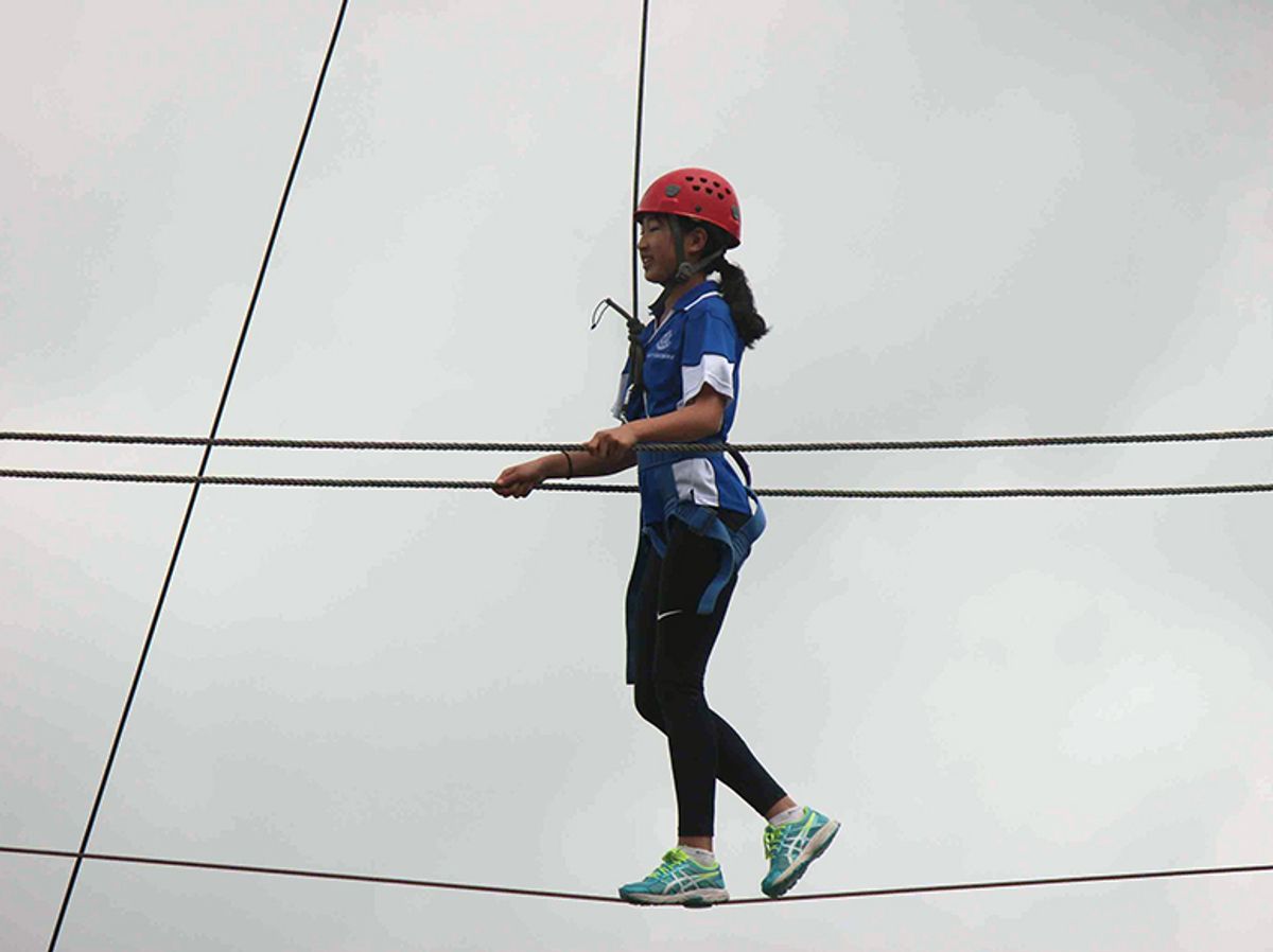 ‘All of the girls got up to at least one of the high levels on the wire course, with nearly all students managing to conquer the leap of faith; scaling and standing on the top of one pole, over 15 metres off the ground and then throwing all caution to the wind and leaping into the air to hit a suspended target.’