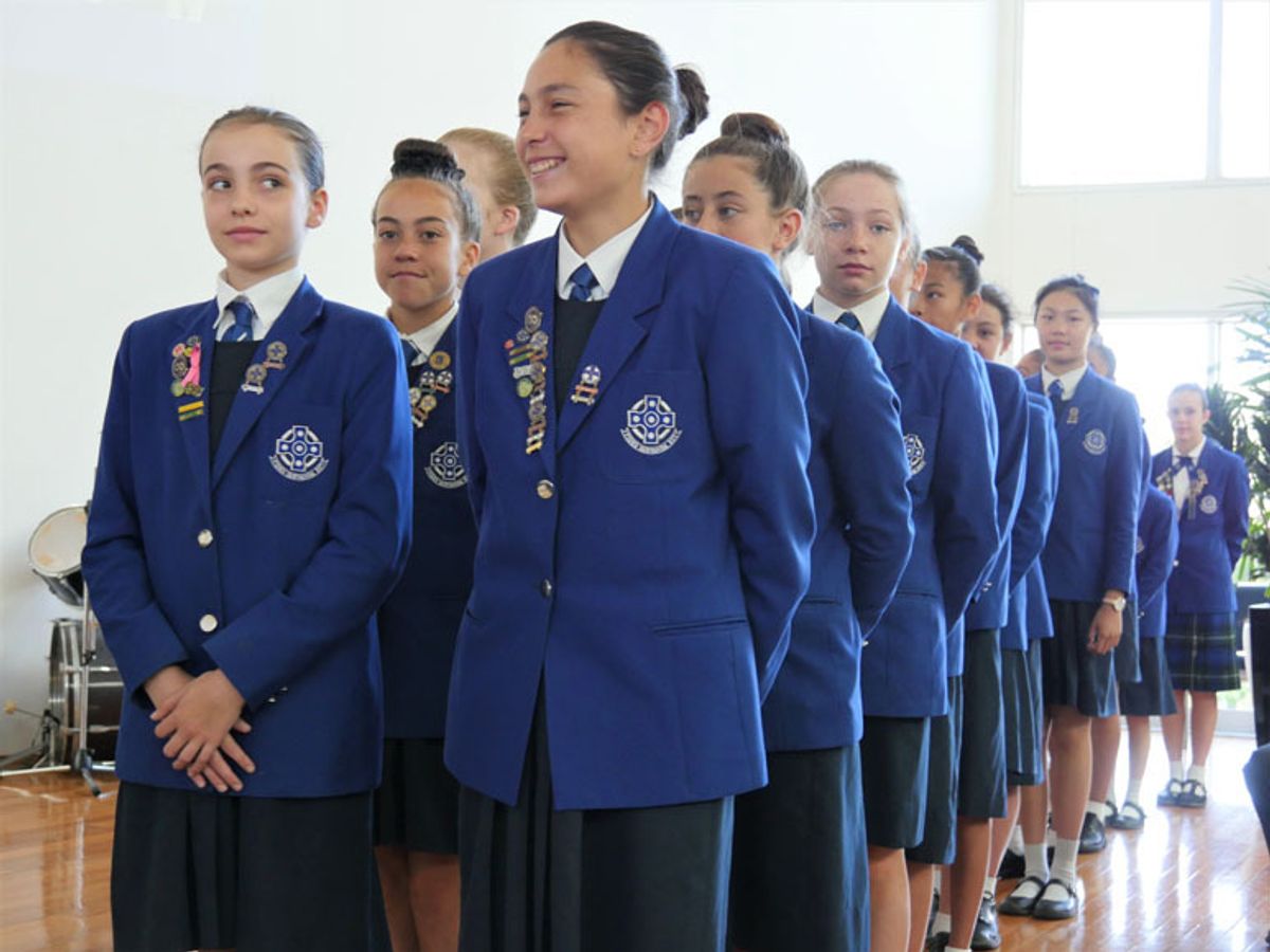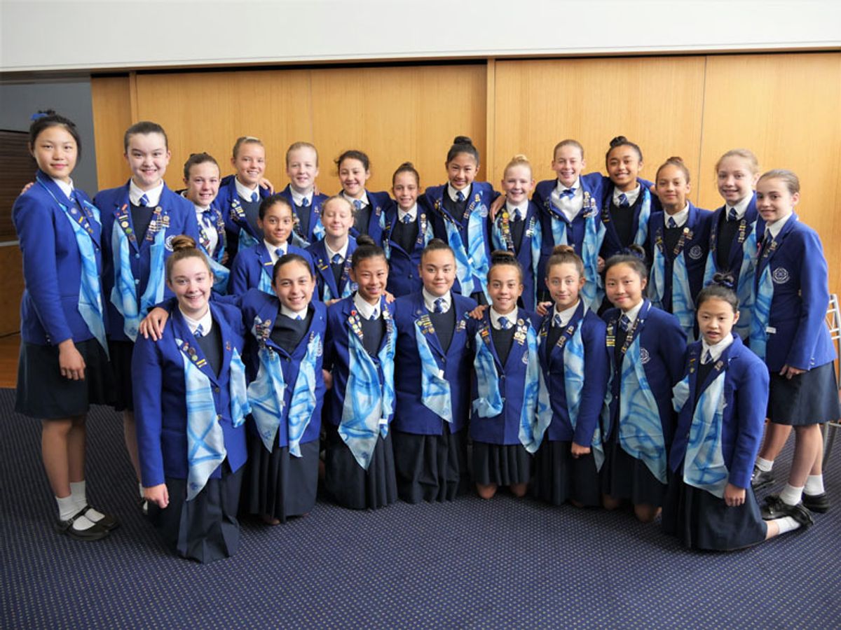 Once received, the Year 8 girls turned to Deputy Principal, Jill Wahlstrom and Senior School Dean, Mrs Bernadette Haerewa who draped each scarf around their shoulders before they stood on the stage.