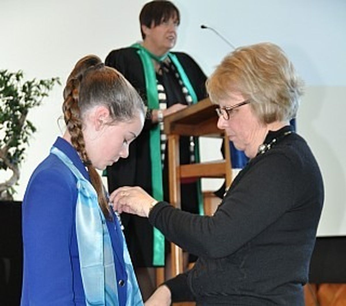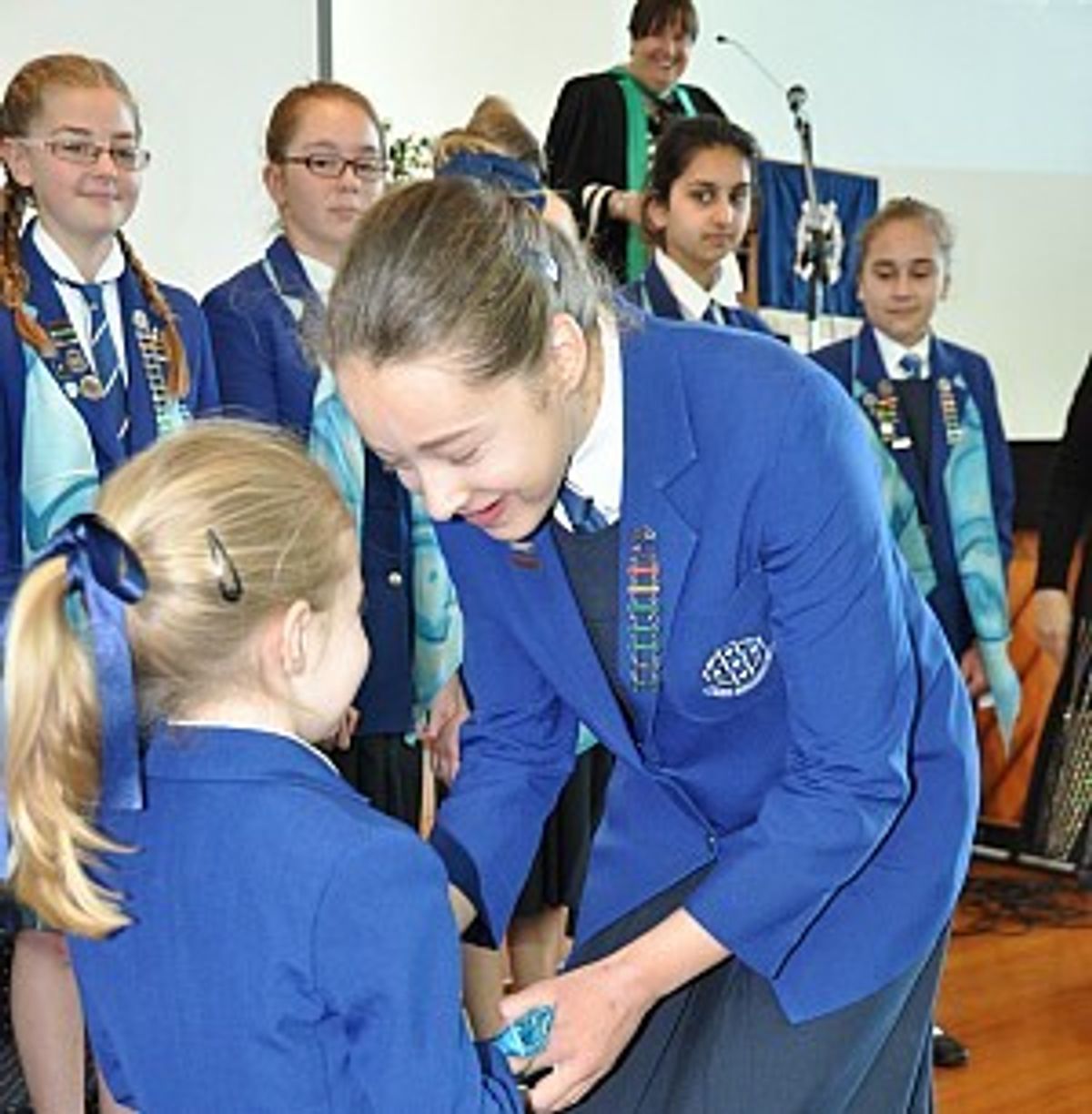 Deputy Principal, Mrs Judith Dobson officially placed each girl’s scarf around their shoulders, and Dr Hastie joked that this may likely be the last time Mrs Dobson fixes their uniforms!