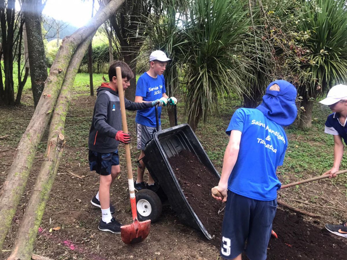 Since 2015, the Boys’ School and Girls’ School have combined to take part in 12 student and parent trips to Fiji and Vanuatu, offering dedicated service to chosen Pacific Island communities. Last year, due to the travel restrictions around Covid-19, the first ‘Kiwi Service Trip’ to Te Kura Akonga O Manurewa took place. With the success of that trip, and the ongoing restrictions on international travel, this year they once again focused their efforts within New Zealand. Prior to Easter, two consecutive trips were organised to Taneatua School and Hughes Garden in Whakatane. The school and gardens had been chosen in partnership with Presbyterian Support Northern, who fund social workers in school communities of high economic and social need throughout New Zealand. These were two communities who had expressed a desire for help.