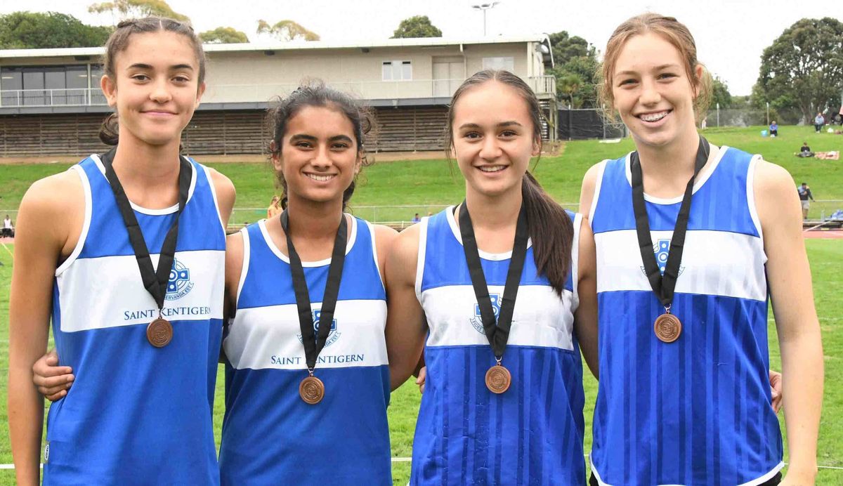 Teare Tunui was awarded Silver in the Junior Boys 100m and 200m races, Maddy Clarke placed second in the Senior Girls Steeplechase and Liam McKenzie also came second in the Intermediate Boys Hurdles. Bronze awards were awarded to Jade Nomani for Junior Girls High Jump, Logan Cowie for Senior Boys 800m and the Intermediate Girls’ 4x 100m Relay team consisting of Mia Harries, Emma Pijnenburg, Jade Nomani and Caitlin McKenzie.