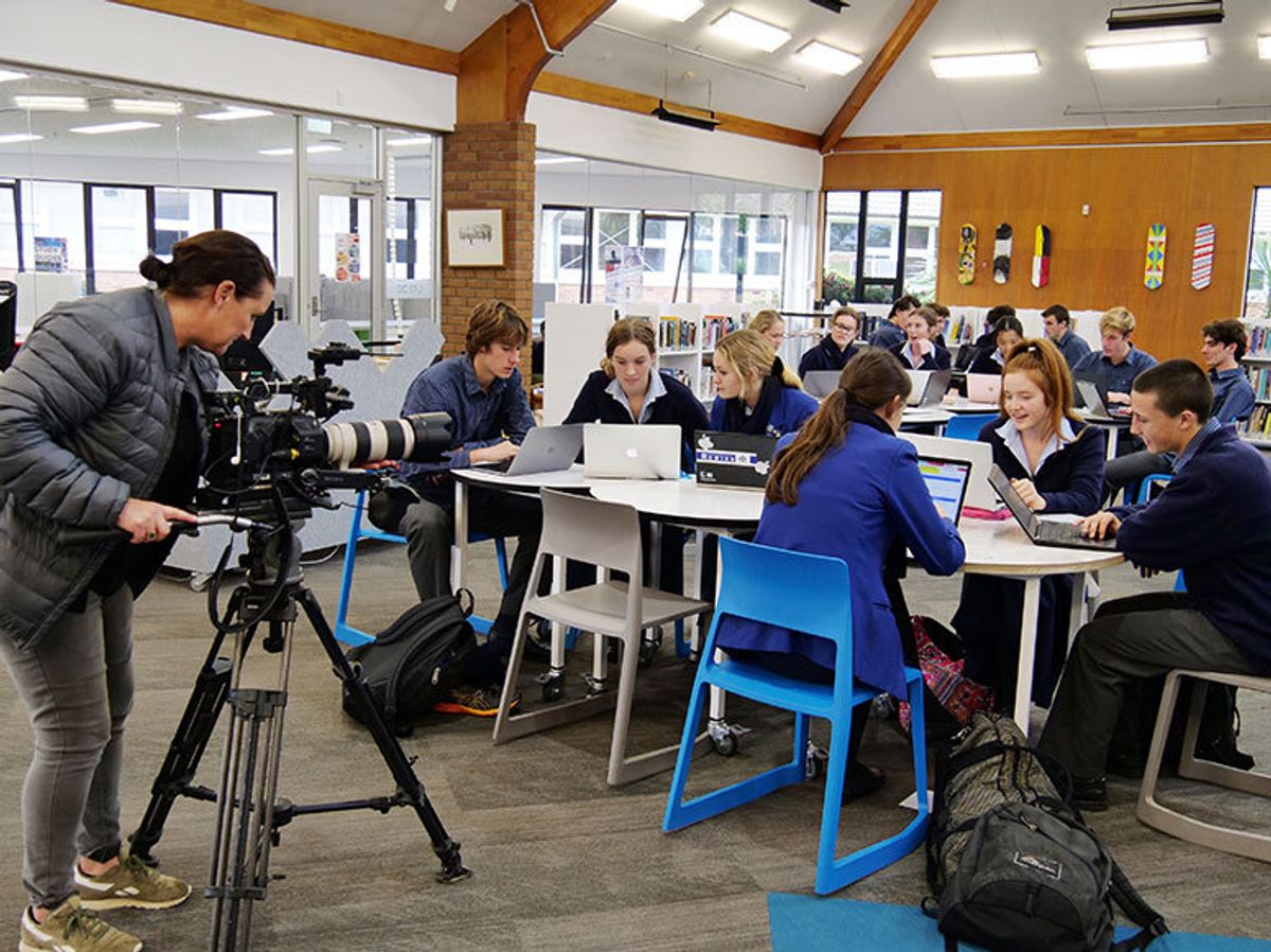 Tim Wilson and a videographer from TV1’s Seven Sharp programme paid a visit to the College last week to prepare a segment about Grace, ready for screening on last night’s TV show. They were curious to know how a Saint Kentigern schoolgirl has become the face and voice for the San Jose, Tourism Board in the USA!