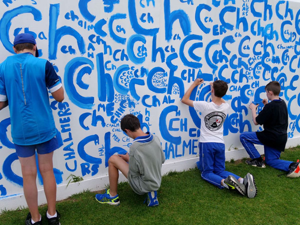 With the school year coming to a close and exams finished, the Year 8 boys took to the field today, in between showers of rain, to begin to add colour to the blank canvas in a House themed effort. Cargill, Chalmers, Hamilton and Wishart worked in teams throughout the morning to gradually build up colour, using only the letters of their House. The seemingly simple theme gradually grew in complexity as each subsequent group added to the work.