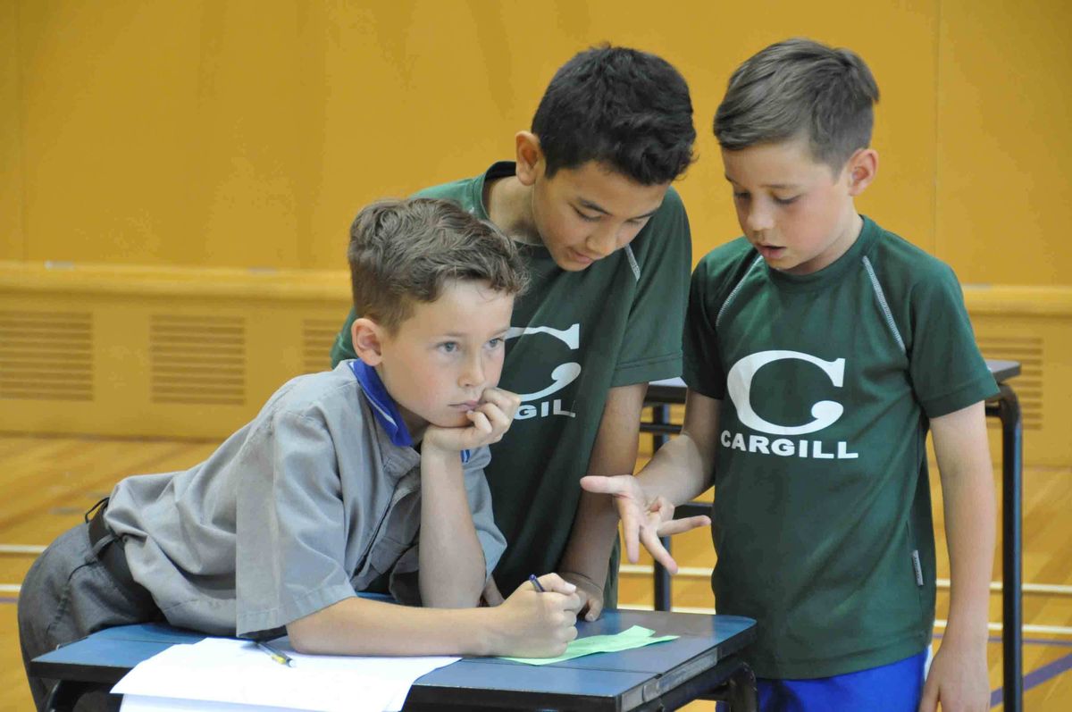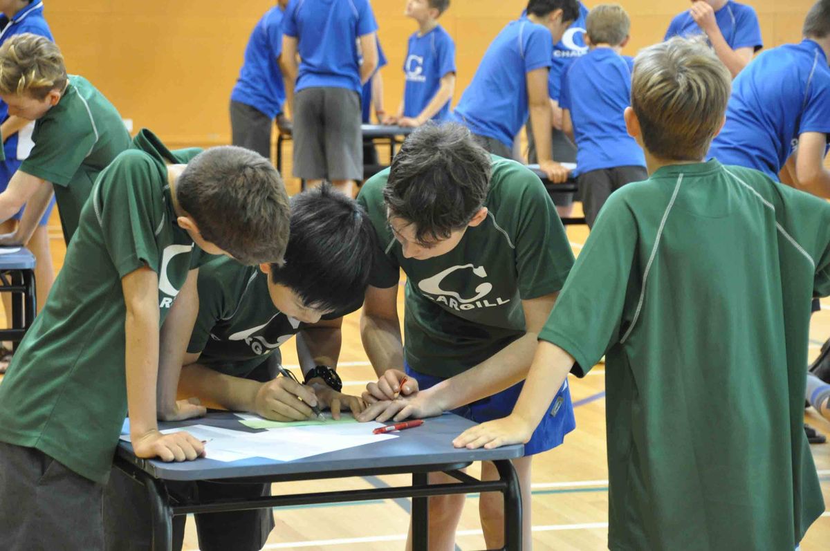 Mathex isn’t just about ‘brain,’ it needs a little ‘brawn’ too! The annual inter-House competition tests the students’ arithmetic power and aerobic stamina. Here’s how it works: in small groups, they have to solve maths problems as fast as they can. When they think they have the answer, a nominated team member, the runner, sprints to the adjudicating desk to check the result. If it is correct, they earn five points and are given another question. If it is wrong, they can opt to try again, or pass on the question and forfeit those five points. The questions are tailored to the boys’ year level, but with the clock ticking they’re not as straight-forward to solve as in the classroom!
