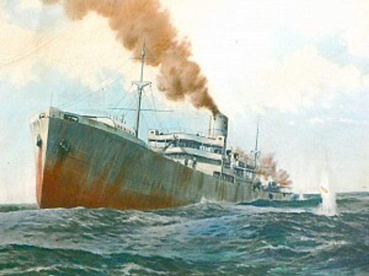 His ship, the merchant ship SS Otaki was critically damaged in March 1917 by a German raider, Moewe. Although armed with only a small 4.7 inch gun, the Otaki returned fire and fought bravely. But when the Otaki was badly damaged and four of his men had been killed, the Captain gave the order to abandon ship. He himself stayed on board as his ship sank.
