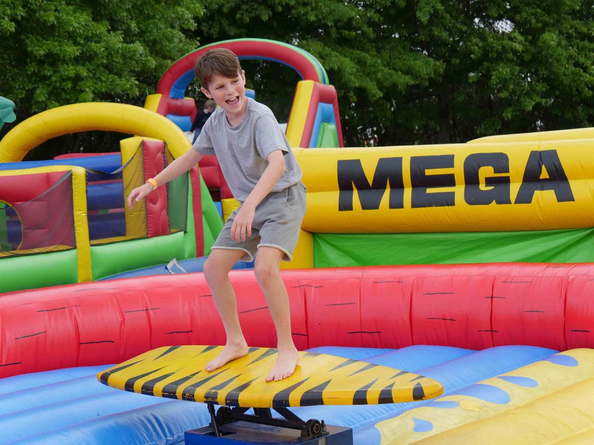 From late afternoon, the stage came to life, as the Boys’ School musicians entertained, drawing a mini-mosh pit of proud parents to record the performances on their phones! Meanwhile the majority of the youngsters flocked to the rides, purchased wrist band at the ready, to take advantage of as many turns as possible while the daylight lasted. Amongst the adrenaline-filled fun was the ‘world’s tallest inflatable slide,’ that caused more than a few wide eyes as those brave enough to climb, whizzed down the slippery slope! A new addition this year was a maze that proved a true puzzle for some!
