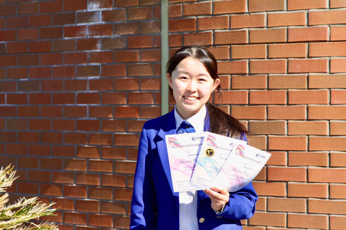 Melanie Yin emerged as the winner in the Year 9-10 Environmental Science/Planet Earth & Beyond category with her project on antibacterial inhibition by natural essential oils. Melanie's investigation aimed to identify the most effective essential oil for eco-friendly kitchen wipes. She earned two special awards for her work - Environmental Award and tied for Best Innovation, Invention or Investigation by Year 10 with College students George and Oliver McGuniess.