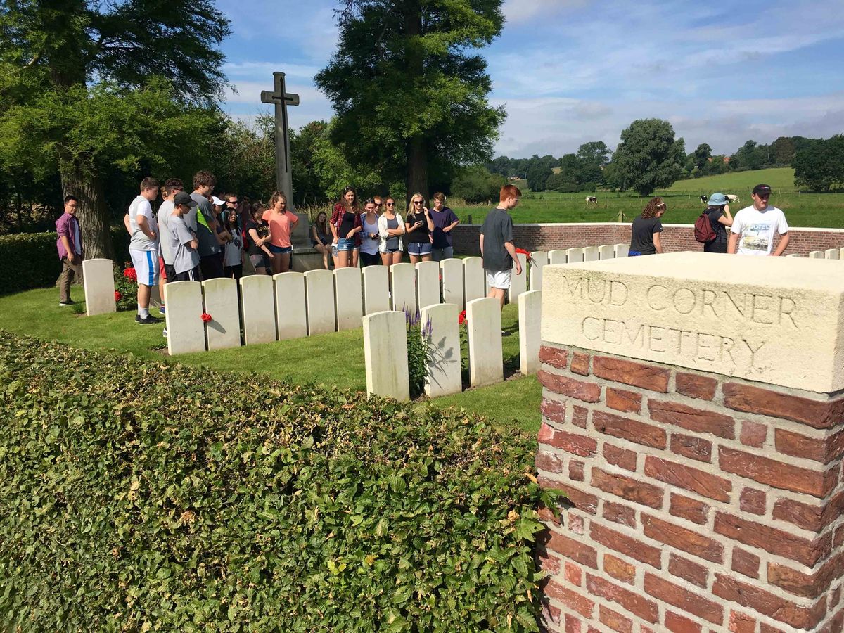 The road to Passchendaele followed and it was here that the students took charge, taking turns to inform their peers of the events of 1917. We made a personal visit to Year 12 student, Claire Hofman’s great uncle who was sadly killed aged 20, at Messines, on July 31, 1917. At the same spot, we stood where, in 1914, the famous Christmas truce occurred, and Hitler was wounded by gas on the front lines in 1916. Our journey of the New Zealand soldiers continued with a stop at the Messines Ridge Memorial. Again, the students could gaze in the direction the NZ troops stormed ‘over the top’ towards the newly mined land where the German trenches once stood, and we, 99 years later, followed.