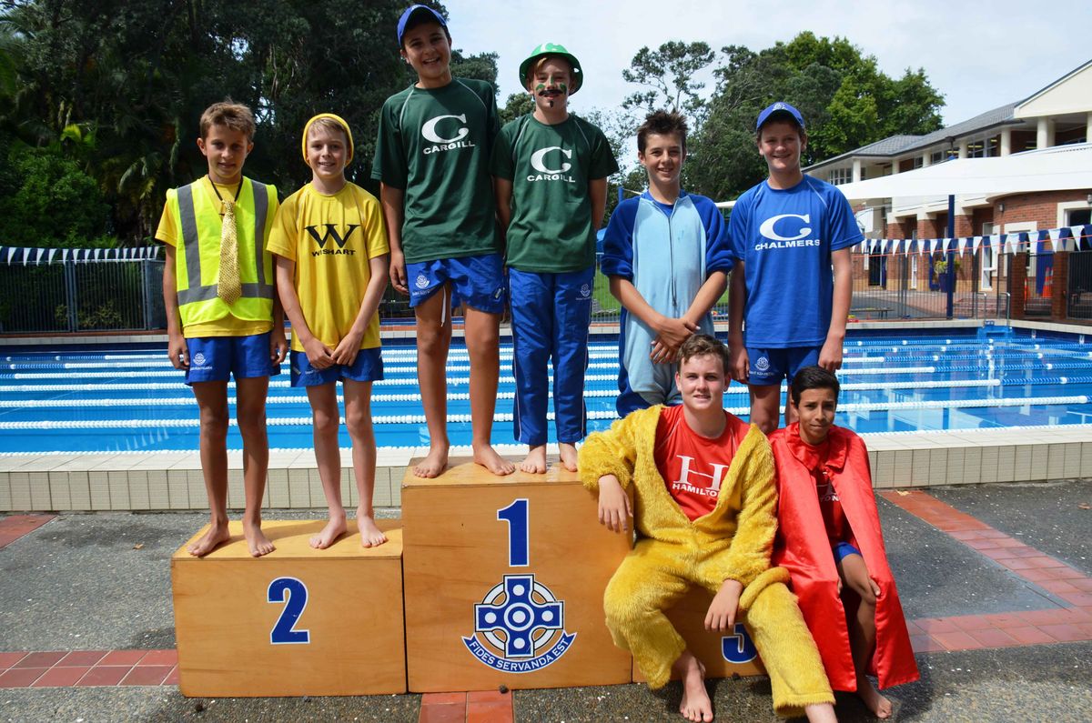 After the final senior relay, both teachers and students took to the water for their traditional fun race.