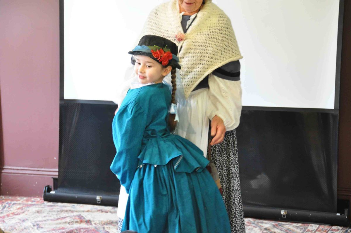 In groups, the girls undertook four different activities, getting a hands-on and interactive experience relevant to the mid-1800s. Already in period dress, the girls received a lesson on fashion from the Victorian times. Using replica clothing, some of the girls were dressed as female and male, in age-dependent clothing to demonstrate the practicalities of the 19th century fashion items. The students learnt that boys under the age of five were dressed like the girls with the only difference being, they wore a cap and their hair was parted on one side.