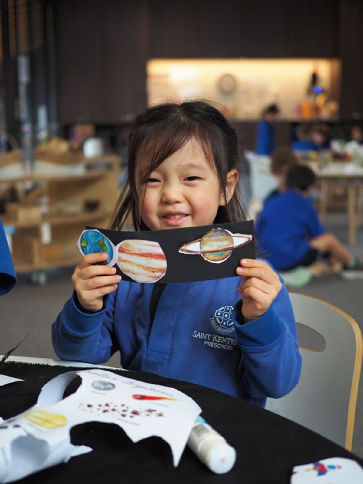 As part of our Reggio-inspired pedagogy, we have been following the children’s interest in outer space. Our investigation started when an individual had questions about asteroids. Their curiosity sparked a chain reaction of interest, which led to more group discussions about our solar system. Throughout numerous conversations, children have been able to refine and extend their thinking about the planets, stars, moon and sun. The children enjoyed participating in a range of art opportunities based on this interest such as making a collage of Earth, making the moon and its craters out of clay, and drawing their favourite planet.