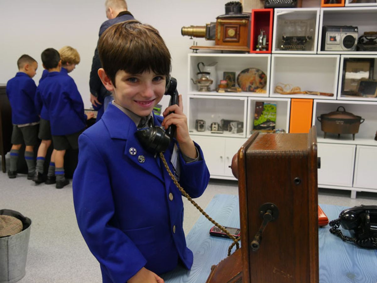 The theme of the past informing the present, and the future, was continued on their trip to the Museum of Transport and Technology (MOTAT) today. In the MOTAT classroom, the boys were encouraged to think about what an invention is and what might inspire someone to invent something. By matching old products with new ones that serve the same function, such as a candle and a lamp, or an ink quill and a typewriter, they saw how inventions have developed over time. They also learnt more about the difference between invention and innovation by examining the multitude of shapes and sizes that cameras and telephones have taken over the years, to the point where the two are now combined!