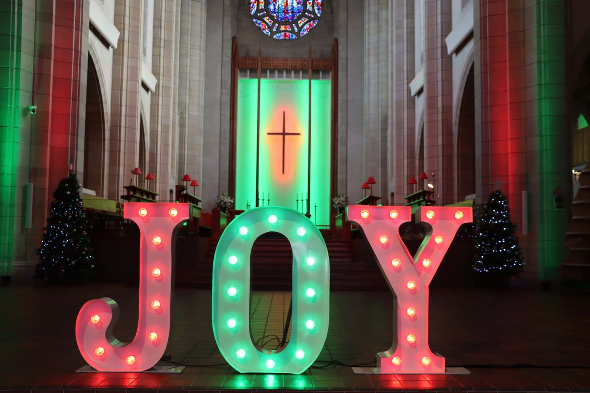 As guests walked into the grand Holy Trinity Cathedral, they were greeted with light streaming in from the stained-glass windows, alongside a glittering ‘JOY’ sign that lit the stage. The theme of the service, ‘joy,’ was pertinent for the year, as there is much to be grateful and excited for over this lockdown-free holiday season.