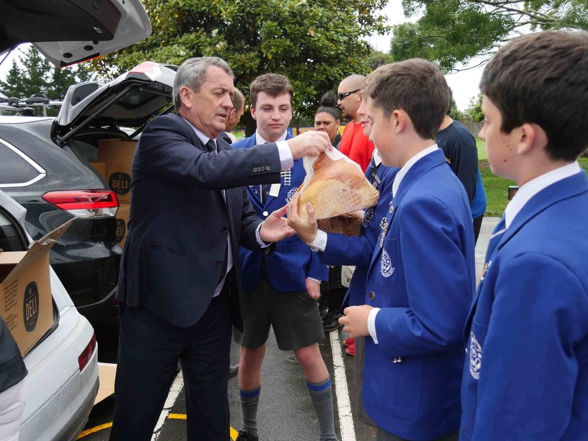 The spirit of Christmas lies in bringing families together, the giving of gifts and sharing of food as we remember the birth of Christ. This week, the spirit of Christmas was shared in a most heart-felt exchange when 70 massive hampers, and a further 50 large hams were donated by the Boys’ School to Wymondley Road School in Otara.