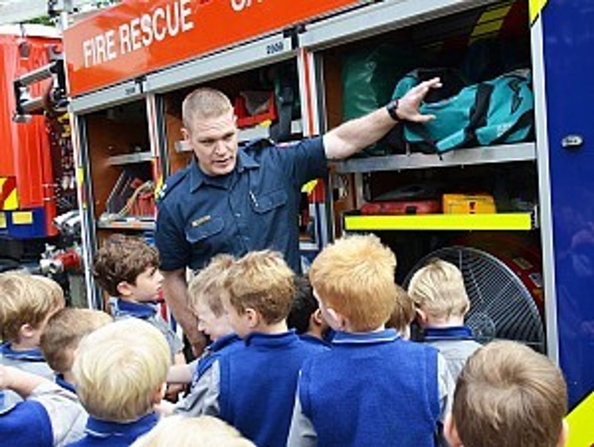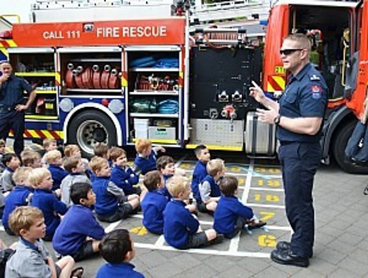 Our Junior School boys could hardly contain themselves when the local Remuera fire fighting team paid a visit yesterday in a gleaming red fire engine. They were bubbling over with questions to ask!