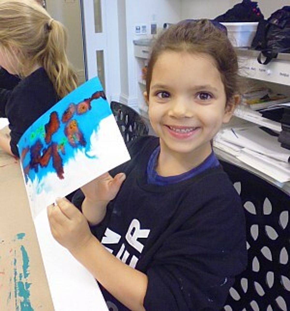 The practical session concentrated on experimenting with colour, predicting what may happen when different coloured dyes engage on paper and how they could manipulate their results. The session finished with using ink and pipettes to make bubbles; a miniature scale of the artwork they had seen. This required enormous concentration to achieve but once mastered, the girls were away!
