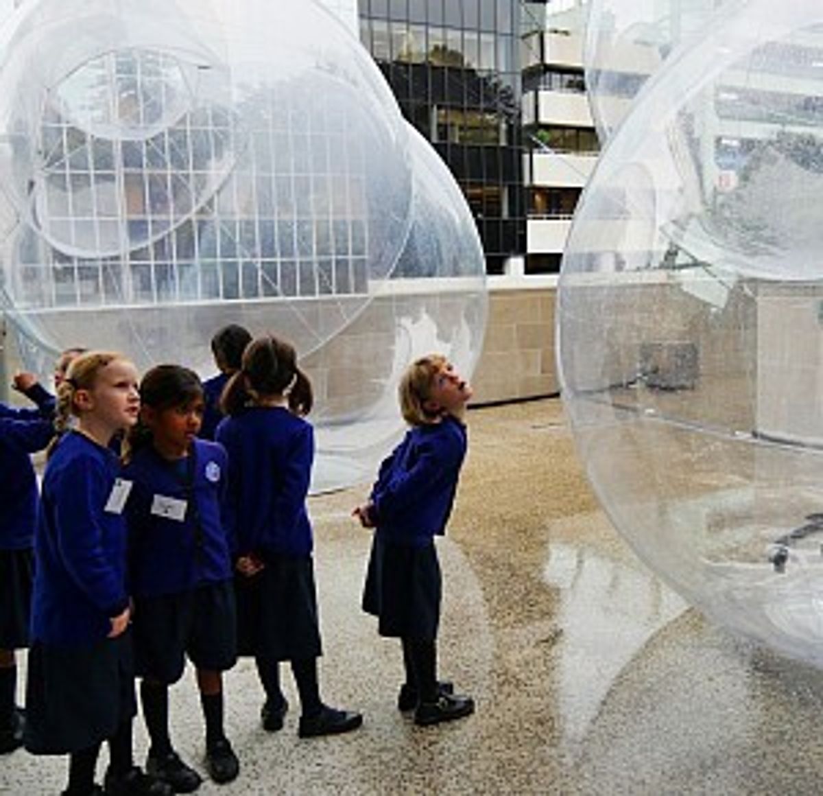 The girls moved on to an outdoor area (in the rain!) to view Seung Yul Oh’s large scale inflatable sculpture ‘SOOM’ - the Korean word for ‘breath,’ as the large PVC bubbles require constant aeration and appear to breathe as they respond to fluctuations of temperature and wind. This gave the girls another opportunity to discuss the language of shape and form. Their vastly different interpretations also offered the chance to discuss how each person sees and interprets an artwork differently.