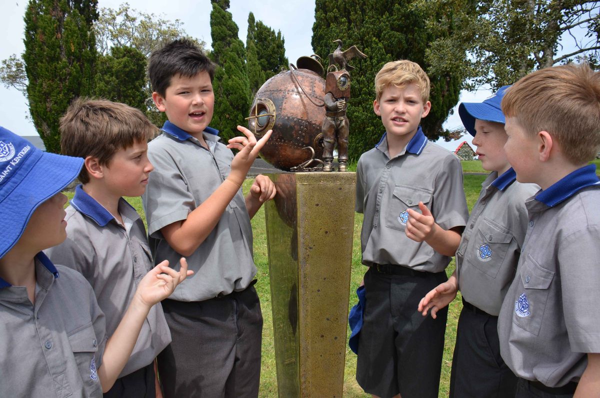 To support their unit of study, the boys were fortunate to be able to visit the NZ Sculpture OnShore exhibition based at North Head in Devonport. One of New Zealand’s largest and oldest outdoor exhibitions, it has grown over the years from being based in a private garden to occupying the spectacular Fort Takapuna Historic Reserve on Auckland’s North Shore.