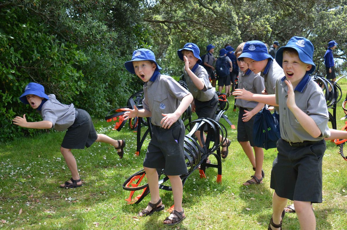 The exhibition, which features work from established and emerging artists, provided the boys with a unique snapshot of contemporary, three dimensional art practice in New Zealand today. Purposefully placed around North Head with backdrops ranging from open water to city skylines, the works included monumental stand-alone sculptures, domestic and small-scaled works, ephemeral projects, light and sound art works, process art and many site-specific installations.